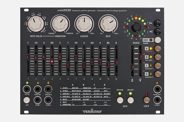 Vermona meloDICER is a stochastic pattern generator and quantizer for Eurorack, enabling the creation of random yet musical melodies and rhythms with precise control.